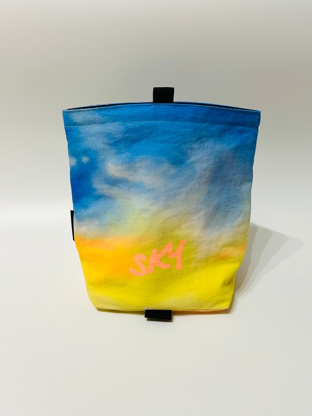 付いたチョークが雲のようになって使う人の空が作られていきます。 バッグが倒れてもチョークがこぼれにくい、オリジナルデザイン。 収納時は折りたたんでバックルでしっかり留めることができ、とてもコンパクトにまとまります。 1点モノです。 ※オリジナルバックルはこちらが最後となります。 ◼️サイズ 高さ 23cm 幅 25cm 底 15cm×16cm